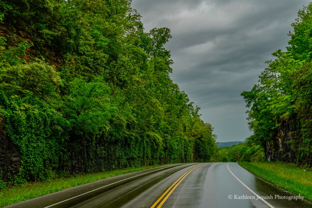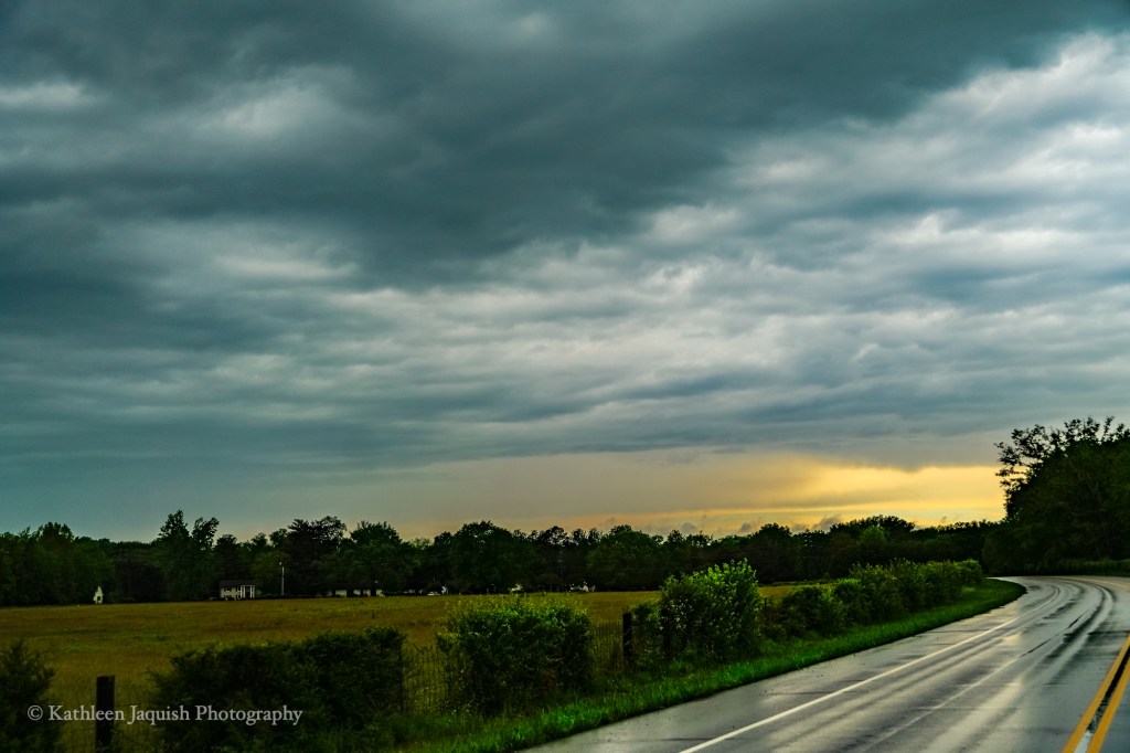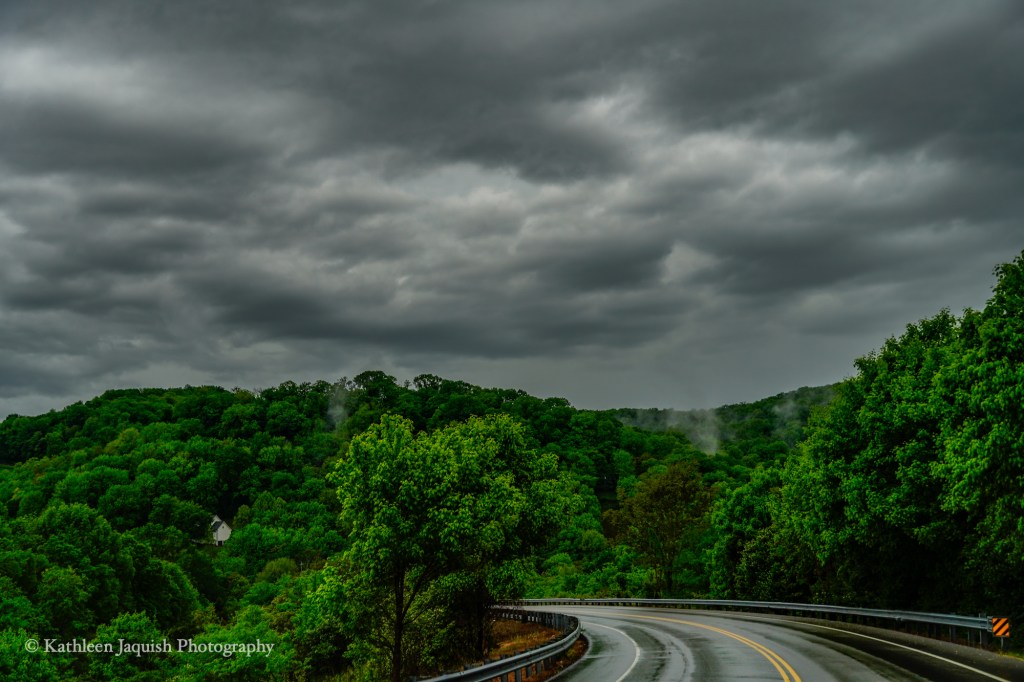 The drive was gorgeous. The dark, moody clouds made the world feel a little sleepy, while small, translucent clouds clung to the sides of the rolling hills.